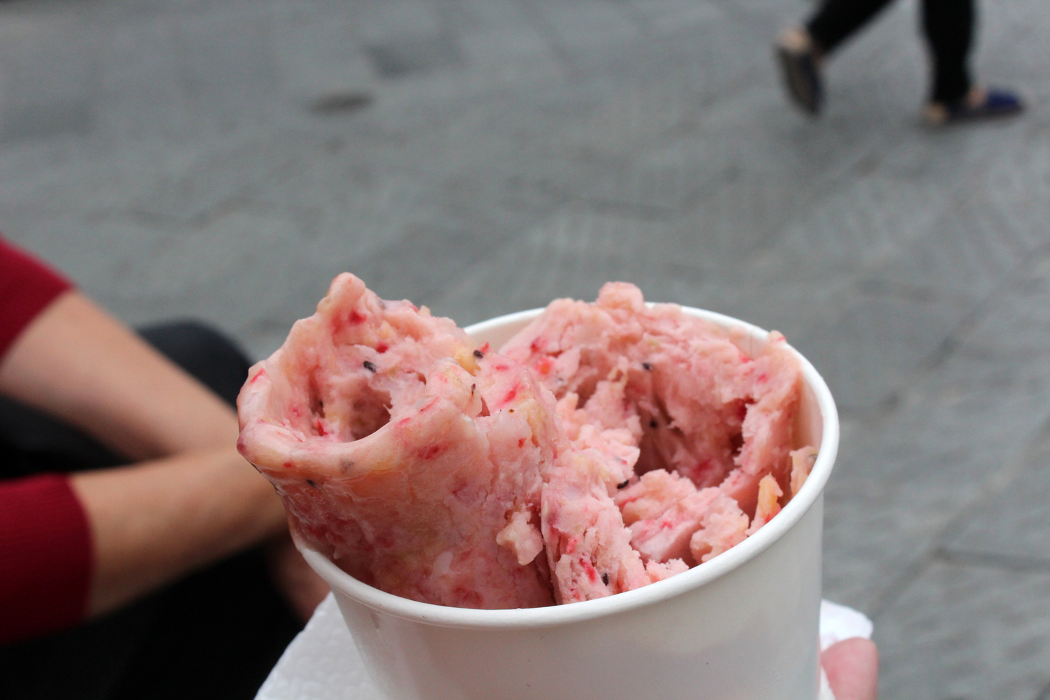 Sorbet of frozen finely minced mixed fruit [advertised as ice cream] prepared