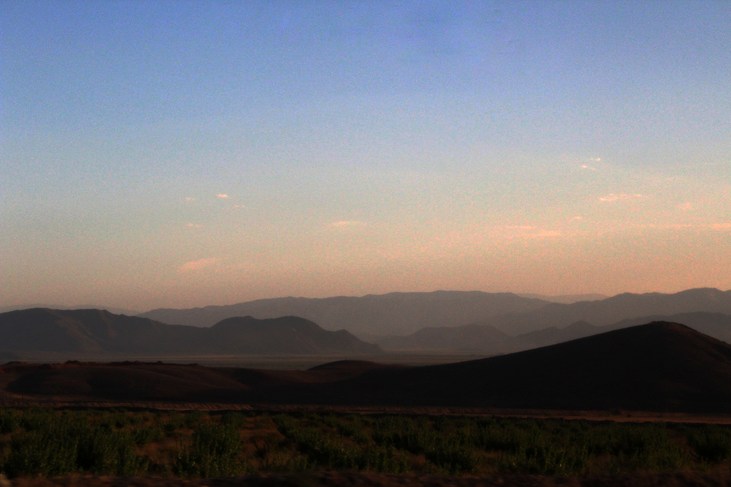 | Sunset and Mt. Ararat. | Another view, a little later, a little more distant on the road. | Further in time and distance. | Return to Index | ||