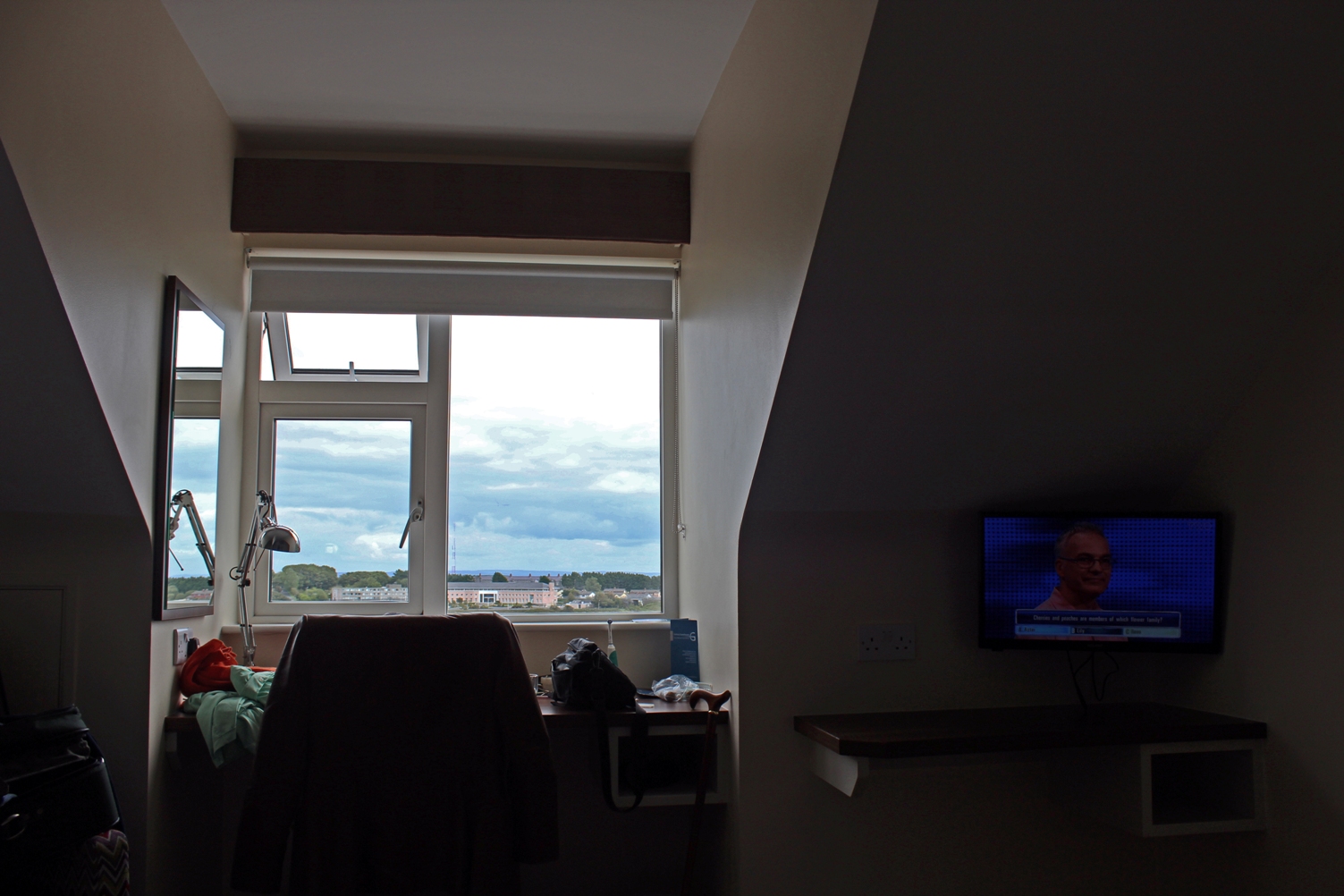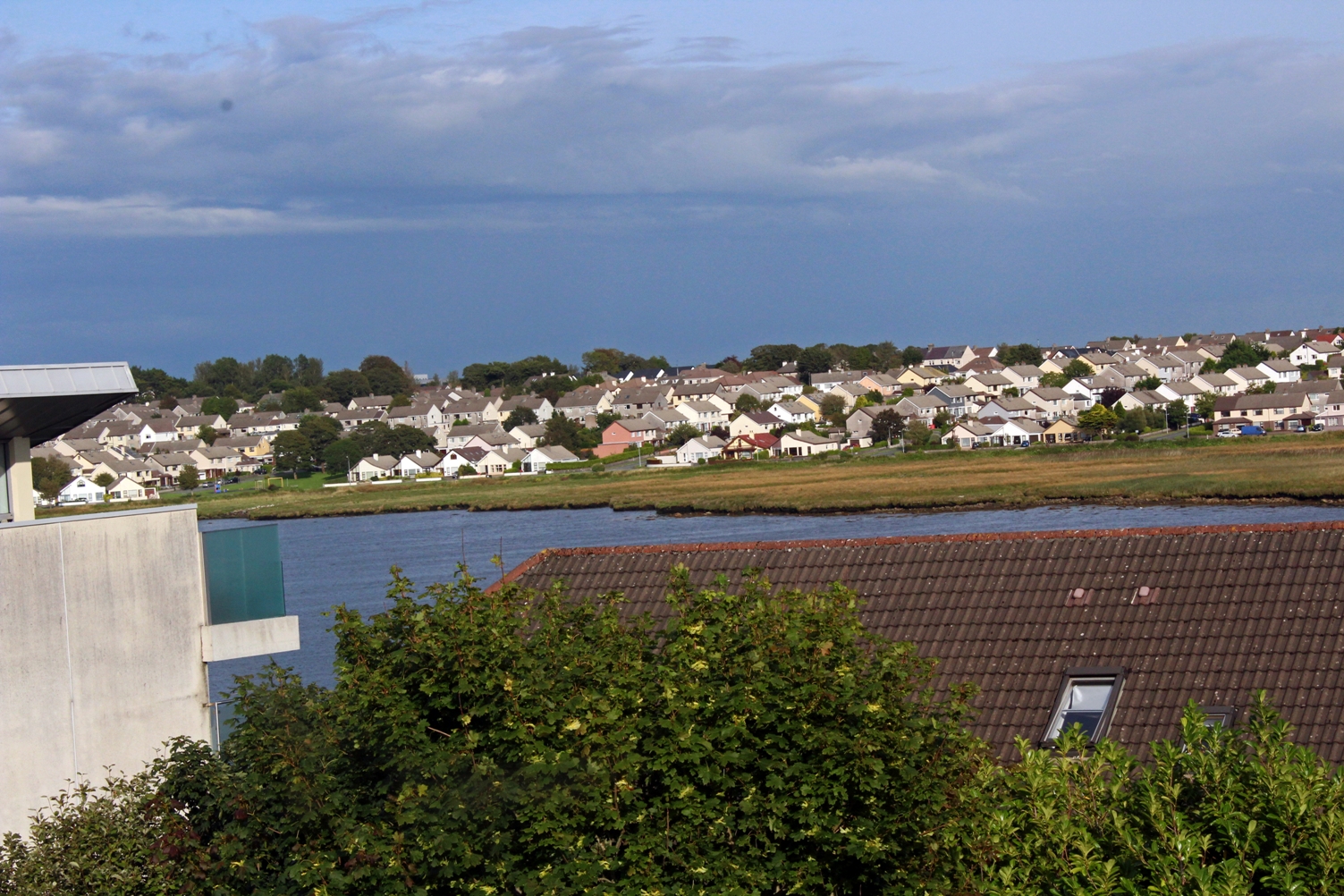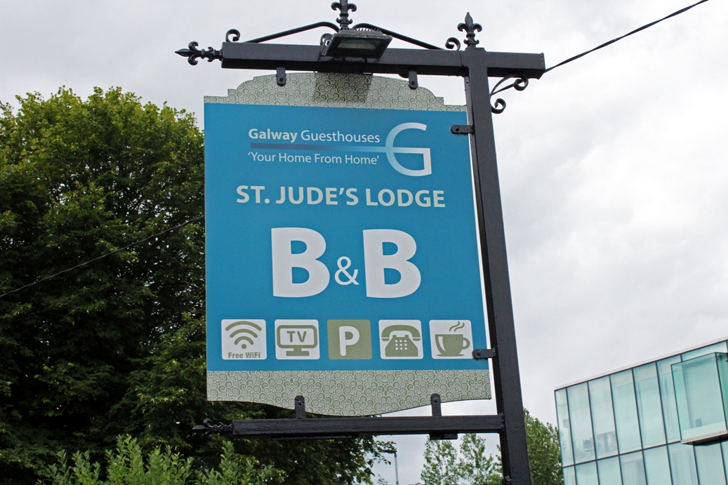 Along a row of similar B6Bs, St. Judes Lodge has two floors of rooms and busy with guests. A French tour was staying at the same time. Breakfast was buffet and so-so in quality. | My room was on the second floor looking out at the lagoon, Lough Atalia. It was well lit and comfortable. |